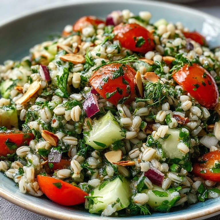 This salad succeeds because flavor lives in three places: in the dressing itself, in the herbs and vegetables, and in the barley's subtle nuttiness. When you toss it all together, those flavors don't just sit next to each other—they actually build and amplify. It's worth taking an extra minute to taste and adjust the seasoning, because a squeeze more lemon or a pinch more salt can turn something good into something people won't stop talking about.