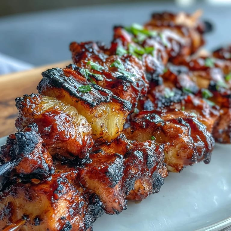 Save My neighbor showed up one July evening with a bag of fresh pineapples from a farmers market, insisting I had to do something tropical with chicken before summer ended. I'd grilled plenty of plain skewers before, but something about the way he described the caramelized edges and that sweet-savory combination made me dig through my spice cabinet that night. The first batch came off the grill with these gorgeous char marks, and watching his face light up as he bit into one told me this was something I'd be making every summer from then on.