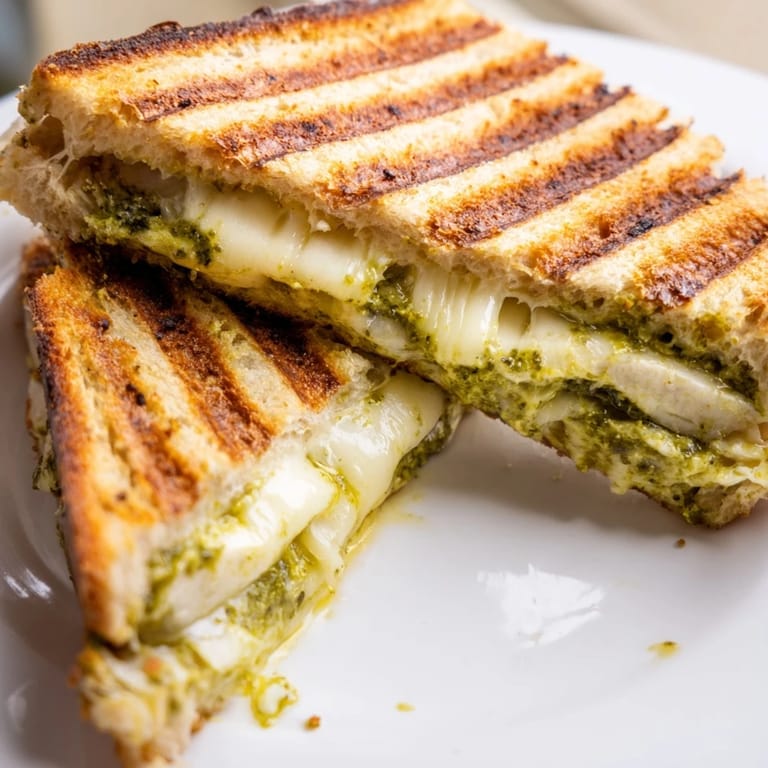 Save The way the garlic and basil hit hot butter still catches me off guard every single time. I stumbled onto this combination during a rainy Tuesday when regular grilled cheese felt too plain and takeout wasn't happening. Something about sourdough's tang meeting pesto's brightness just clicked in that way certain flavors do when you stop overthinking and start cooking.