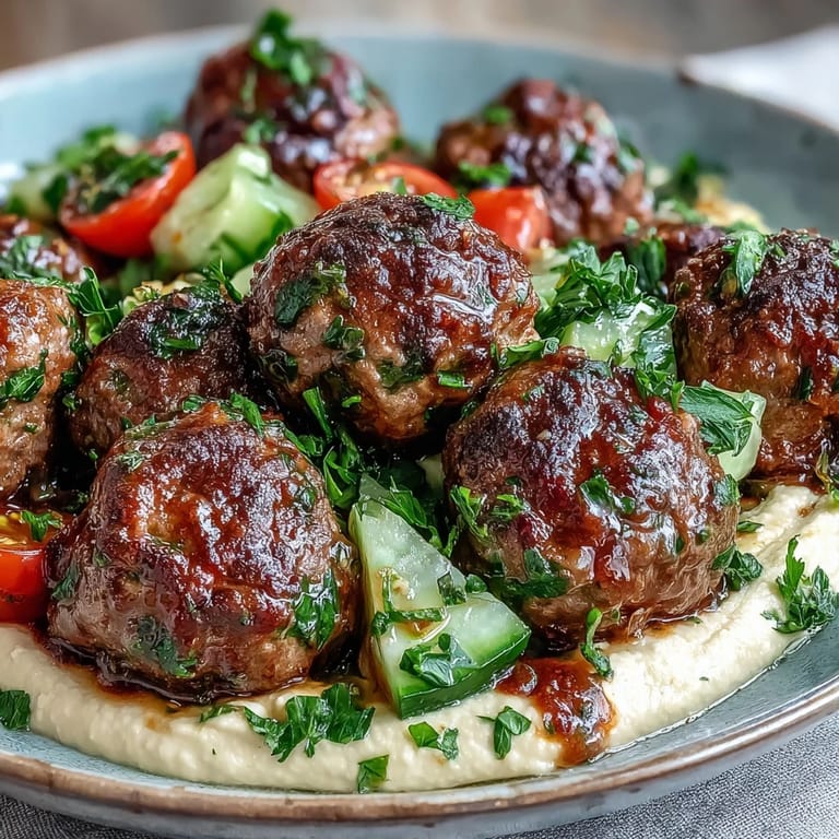 - Spread a generous swoosh of hummus on each plate, pile on some salad, and arrange the warm meatballs on top. Garnish with extra herbs if you're feeling fancy.